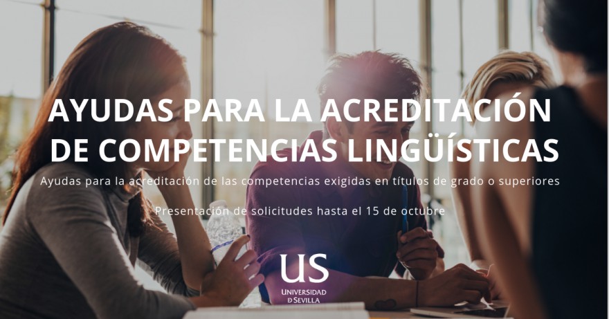 La Universidad de Sevilla ha abierto el plazo para solicitar las Ayudas para Fomentar la Adquisición y Acreditación de las Competencias Lingüísticas en la Universidad de Sevilla, enmarcadas en la Convocatoria de Ayudas Propias del curso 2018/19. Estas becas tienen como objetivo promover la igualdad de oportunidades en el ámbito de la educación universitaria y son posibles gracias a la colaboración de la Consejería de Conocimiento, Investigación y Universidad de la Junta de Andalucía.